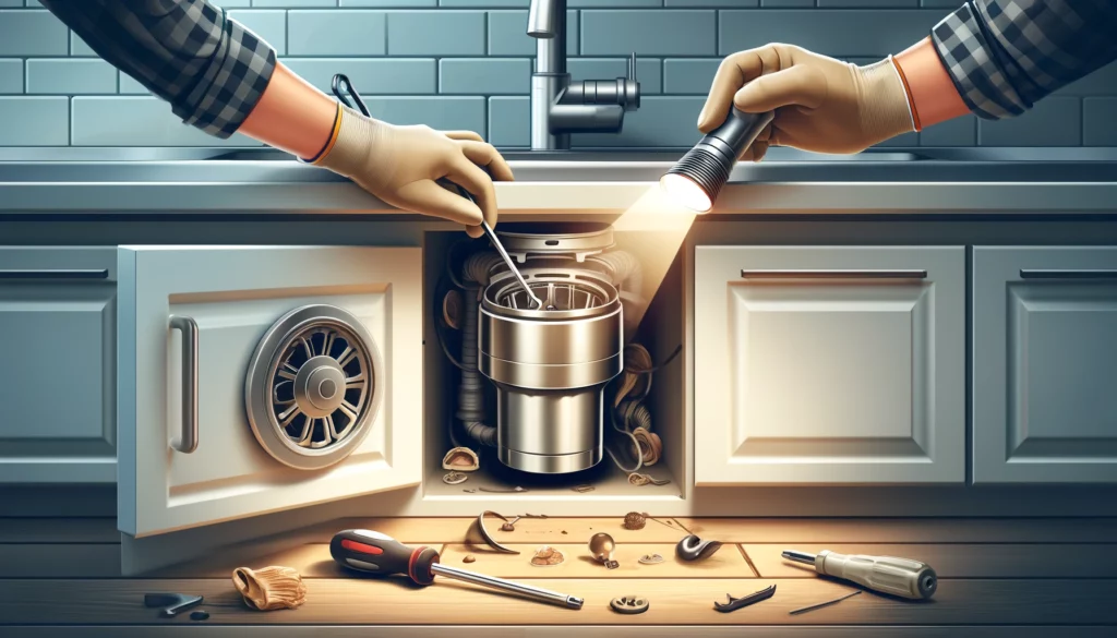 The first step in fixing a jammed garbage disposal is identifying the cause. Start by visually inspecting the disposal with a flashlight. Look for any obvious obstructions such as food particles, utensils, or other debris.